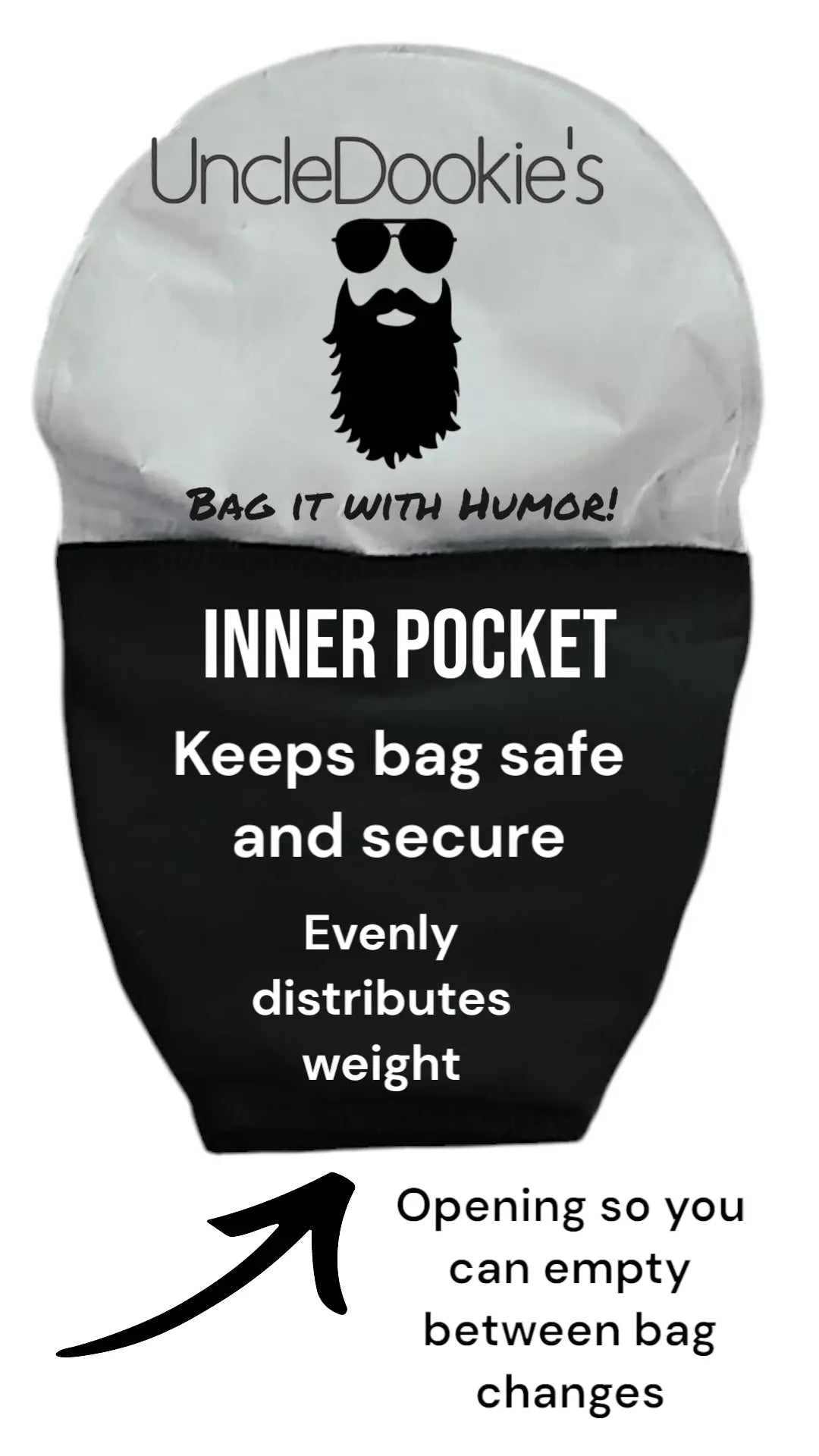 Inner Pocket is designed to keep your bag safe,secure and out of sight. The Pocket also helps evenly distribute weight. Opening at the bottom so you can empty your bag between changes!